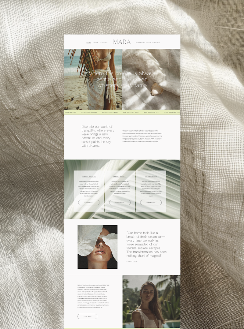 MARA is a clean, modern website template with a high-end feel. This template is responsive, and features light animation for added movement to captivate visitors. This template was built with Interior Designers in mind with 3-4 signature services.